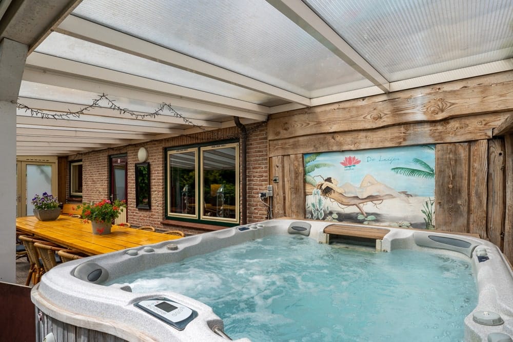 Aansluitend aan de verblijfsruimte vind je een sfeervolle overdekte serre. Aan de andere kant een ruim terras met grote barbecue. Extra ontspannen? Duik in de hottub of ontspan in de Finse sauna.